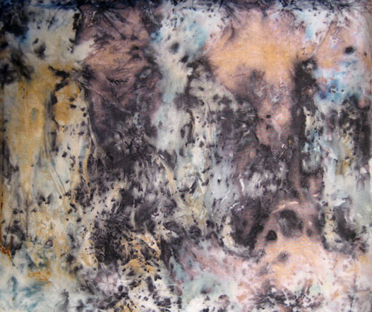 silk, with some matted pieces of wire wool (already rusted) between these two last layers: